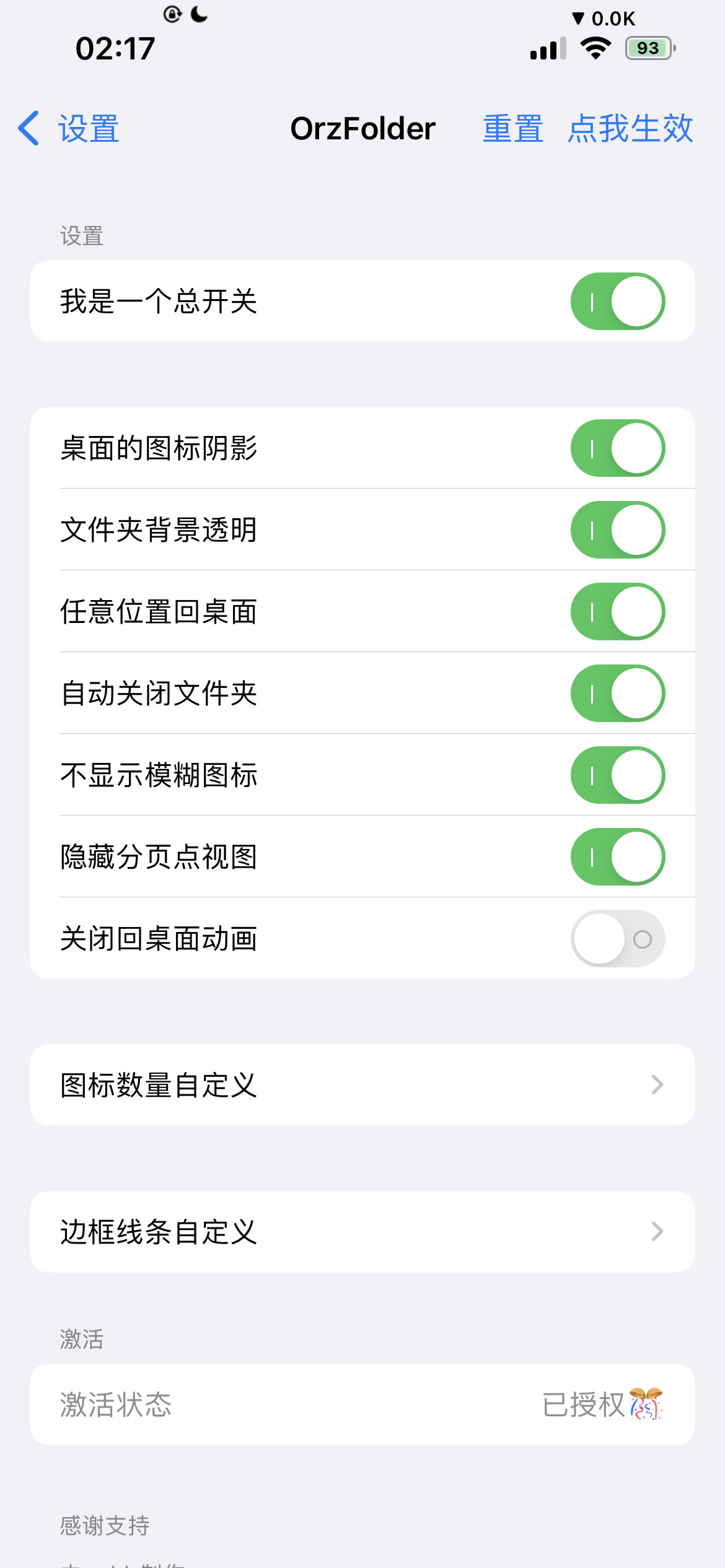 - 文件夹的背景将是透明的,允许设备的壁纸或模糊图标显示出来。